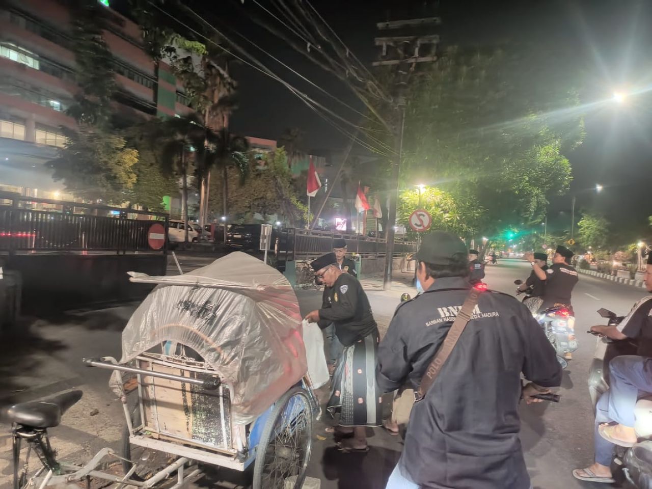 SURABAYA - Pantaukota com , BNPM (Barisan Nasional Pemuda Madura ) DPC Gubeng mengadakan acara pembagian makanan gratis pada malam Jumat di berbagai lokasi di sekitar kecamatan Gubeng.